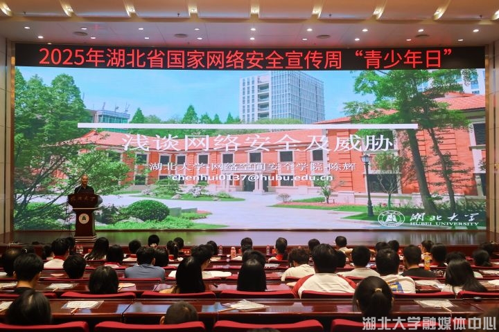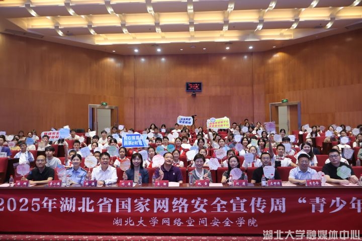 9月19日下午,2025年湖北省国家网络安全宣传周“青少年日”活动在yl23455永利官网会议中心思睿厅开展,共青团湖北省委宣传部部长姚雪、湖北省网络和数据安全协会秘书长刘莉、湖北省青年文化传媒中心副主任刘意、yl23455永利官网团委书记陈俊、yl23455永利官网网络空间安全学院党委书记肖志华出席此次活动,近200名来自校内各学院及附属中小学的学生参与其中,共同学习网络安全知识。