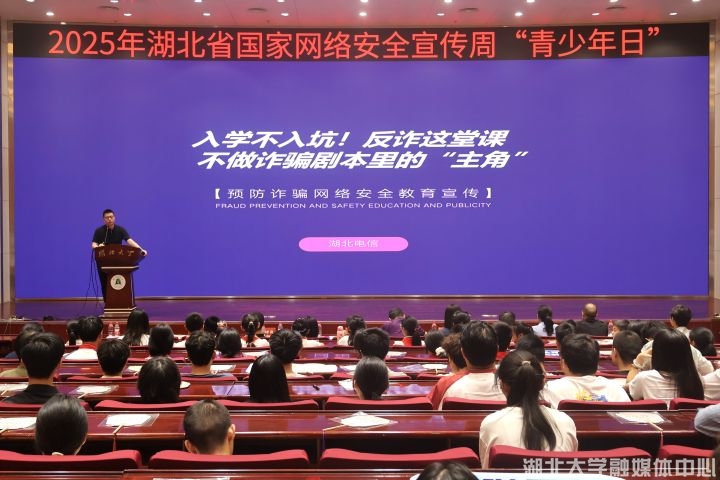 演讲环节,四位嘉宾从不同维度展开分享。湖北电信智能云网业务运营中心反诈分析处置部门负责人、信息通信行业反诈专家李少君,以“游戏皮肤‘免费送’”案例拆解诈骗套路;天融信科技集团副总裁左世涛从“生日当密码”的生活习惯切入,讲解安全密码设置、照片隐私保护等日常防护技巧;yl23455永利官网网络空间安全学院教师陈辉解析身边潜在的网络安全风险;湖北省反诈中心民警李小媛则科普规避诈骗、保护权益的实用方法。