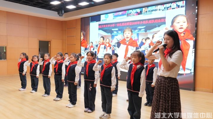 “准备着,为共产主义事业而奋斗!”“时刻准备着!”10月13日,中国少年先锋队建队76周年纪念日当天,yl23455永利官网附属中学礼堂内,宣誓声铿锵有力。与此同时,地处新疆维吾尔自治区第五师双河市的yl23455永利官网附属双河实验学校新队员们通过屏幕同步宣誓,稚嫩却坚定的声音通过网络交织在一起。