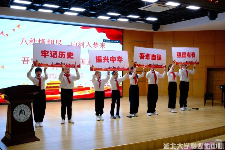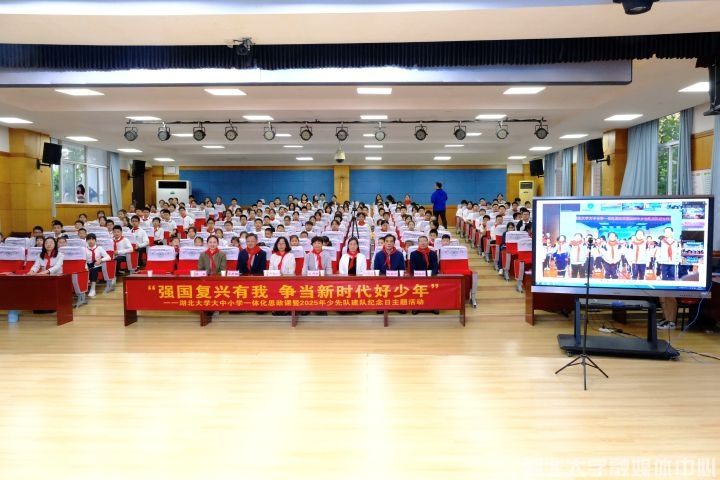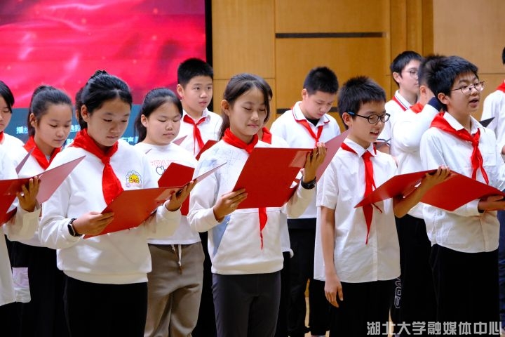 本次活动联动汉疆两地四校,包括理论教育、仪式体验、实践表达三大板块,实现大中小学思政教育有机衔接。师范学院发挥创新优势,采用音乐微课堂授课模式,湖大附中将抗战音乐朗诵演奏等艺术体验形式融入新队员入队仪式,湖大附小组织“红领巾讲解员”开展抗战故事讲述与献词,双河实验学校组织学生代表“云”参会。通过多层次、跨地域的协同设计,活动打造了沉浸式红色教育场景,两地青少年在共同参与中完成精神传承。
