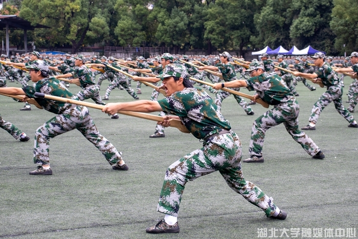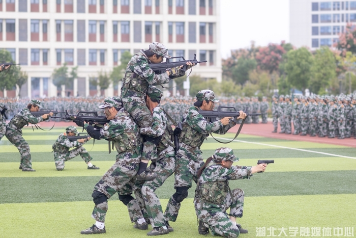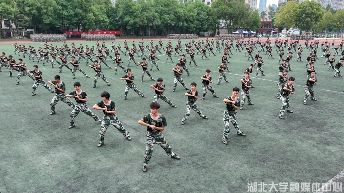 特色方队分别进行了匕首操、手势操、军体拳、刺杀操和战术汇报演练,一招一式铿锵有力、干净利落,尽显湖大学子飒爽英气,引来阵阵掌声。