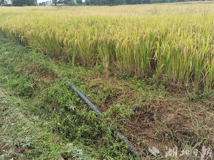 武汉市江夏区五安农机专业合作社理事长易安强介绍,测产田块高低不平,土壤又干又硬,没有水源,以前根本不敢种水稻,从去年开始种植节水抗旱稻,第一年亩产450公斤,今年平均亩产493公斤。